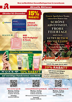 Alle Angebote gültig bis 31.12.2025. Irrtum vorbehalten. Abgabe nur in haushaltsüblichen Mengen. Die Angebote gelten nicht während des Notdienstes.